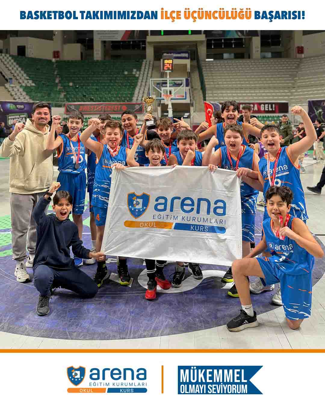 Okullar Arası Küçük Erkekler Basketbol Nilüfer İlçe Müsabakalarında Arena Okulları Ortaokul Basketbol Takımımız, Nilüfer İlçesi üçüncüsü olma başarısı göstermiştir.