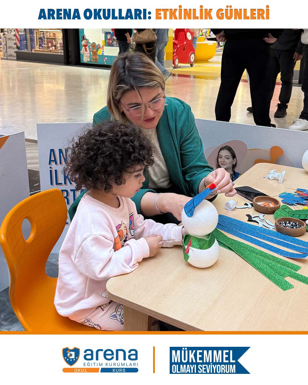 Yaratıcı Atölyeler alanında ise; - Boncuk atölyesi -Kardan adam etkinliği -Sihirbaz gösterisi -Resim atölyesi Çocukların merak duygusunu destekleyen ve yaratıcılıklarını ön plana çıkaran bu özel etkinlikte, Arena Okulları’nın anaokul ve ilkokul eğitim yaklaşımı keyifli atölyelerle tanıtıldı. |