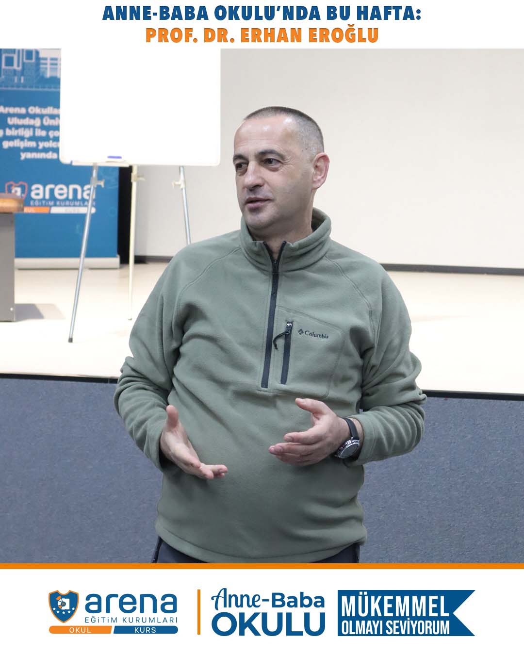 | Anne-Baba Okulu’nda 6. Hafta Tamamlandı! Bu haftaki konuğumuz Prof. Dr. Erhan Eroğlu bizlerleydi. “Çocukla İletişim: Ebeveyn ve Çocukta İletişim Becerilerini Geliştirme” başlıklı oturumda; ebeveyn-çocuk arasındaki sağlıklı iletişimin önemi, etkili dinleme, empati kurma, duygu ifade etme ve günlük yaşamda iletişimi güçlendiren yaklaşımlar ele alındı. |