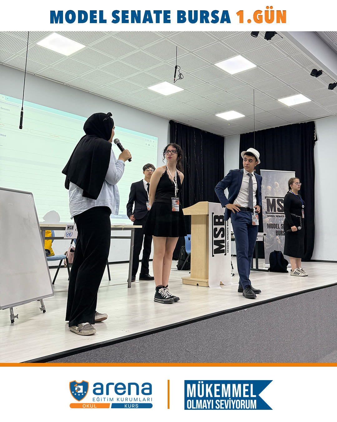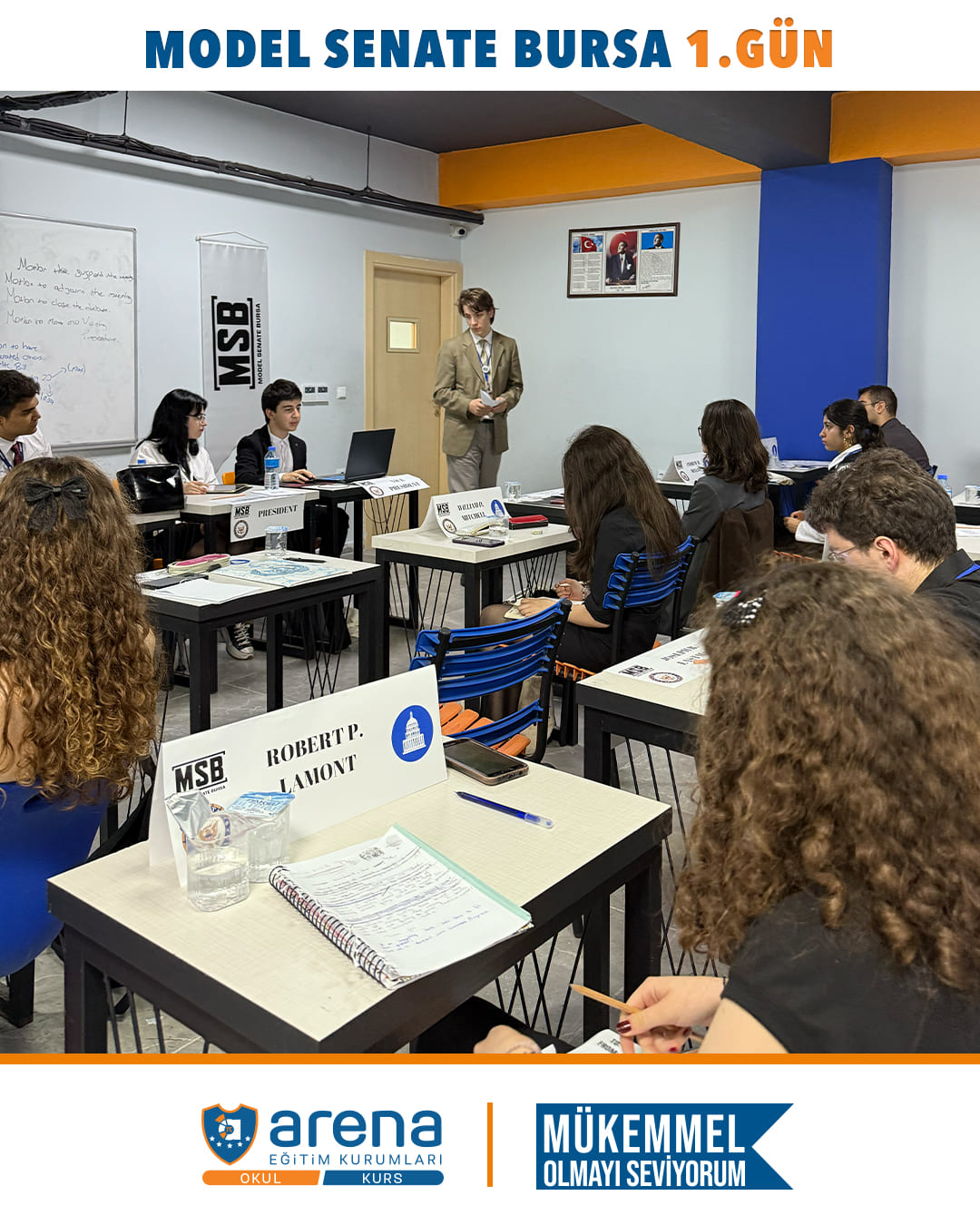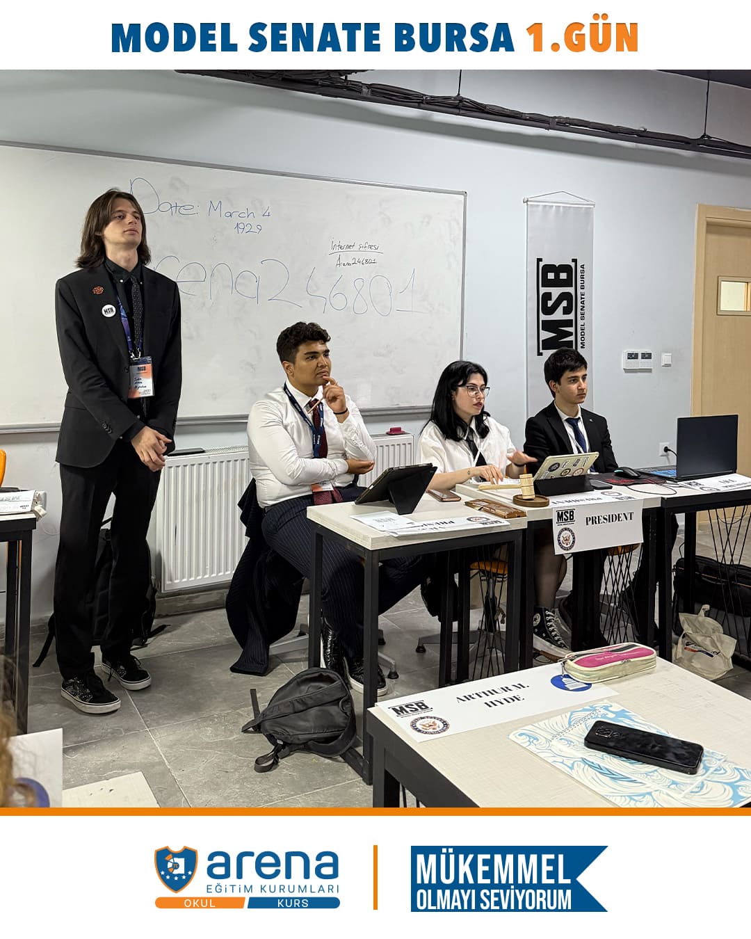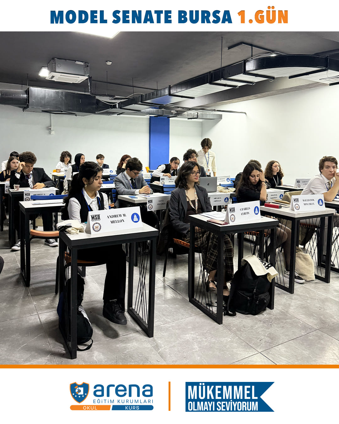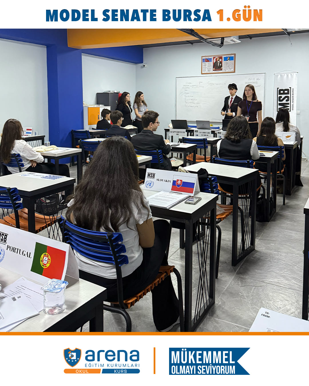 Okulumuz bünyesinde, lise öğrencilerimizin girişimiyle kurulan MODEL SENATE BURSA organizasyonu kapsamında, okullar arası düzenlenen MUN (Model United Nations) etkinliğimizin ilk günü başarıyla tamamlandı.