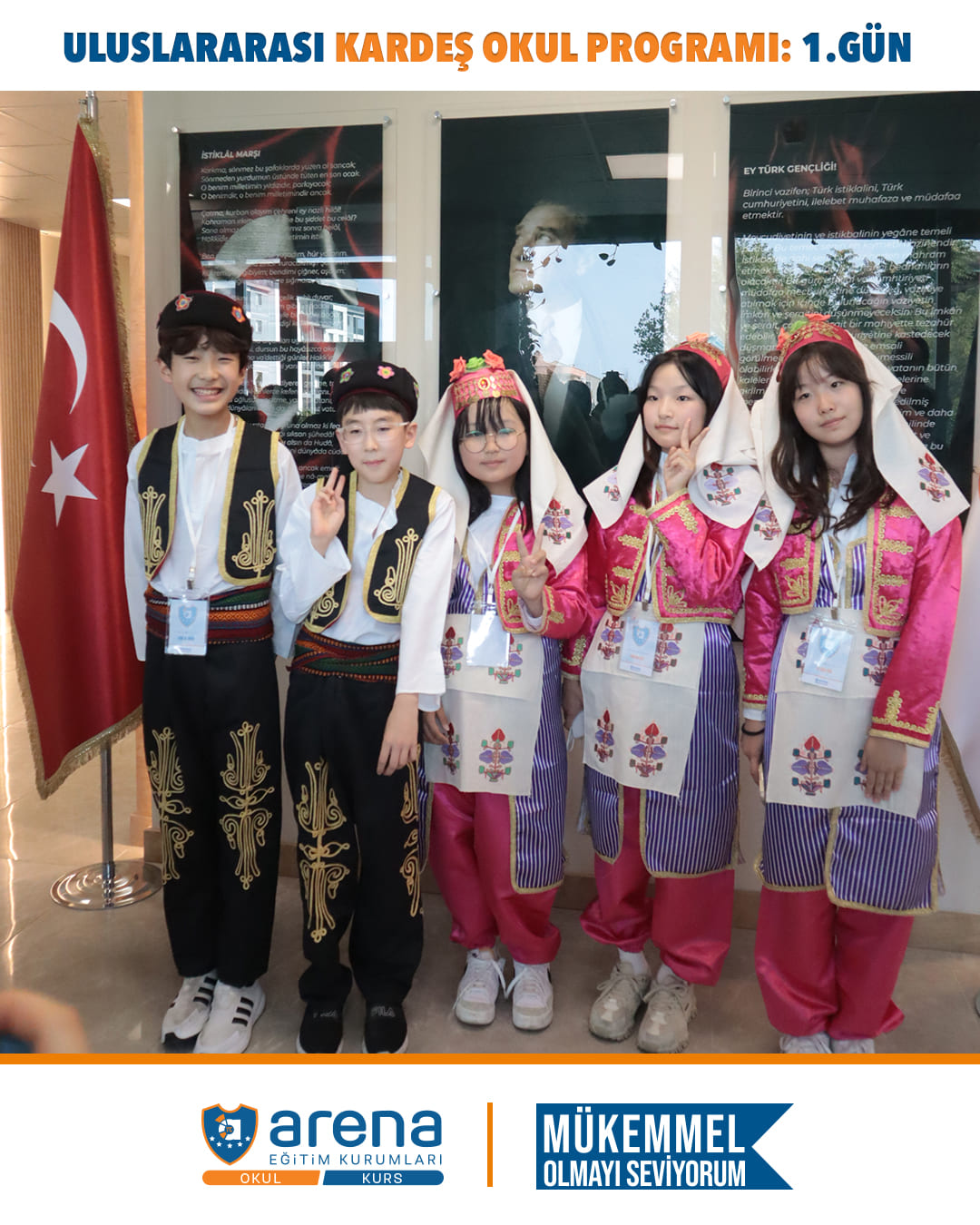 Ziyaretin ilk gününde öğrencilerimiz, misafirlerimizi yöresel kıyafetlerle karşılayarak sıcak ve samimi bir karşılama gerçekleştirdi. Kültürümüzü tanıtmak amacıyla hazırladıkları sunumda Türkiye’nin önemli isimlerini anlattılar, gelenek ve değerlerimizi paylaştılar